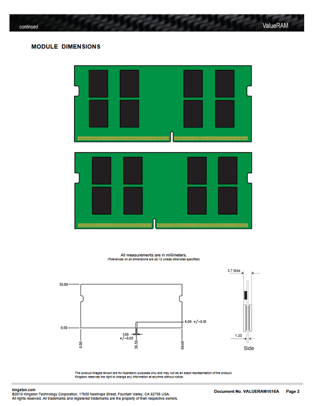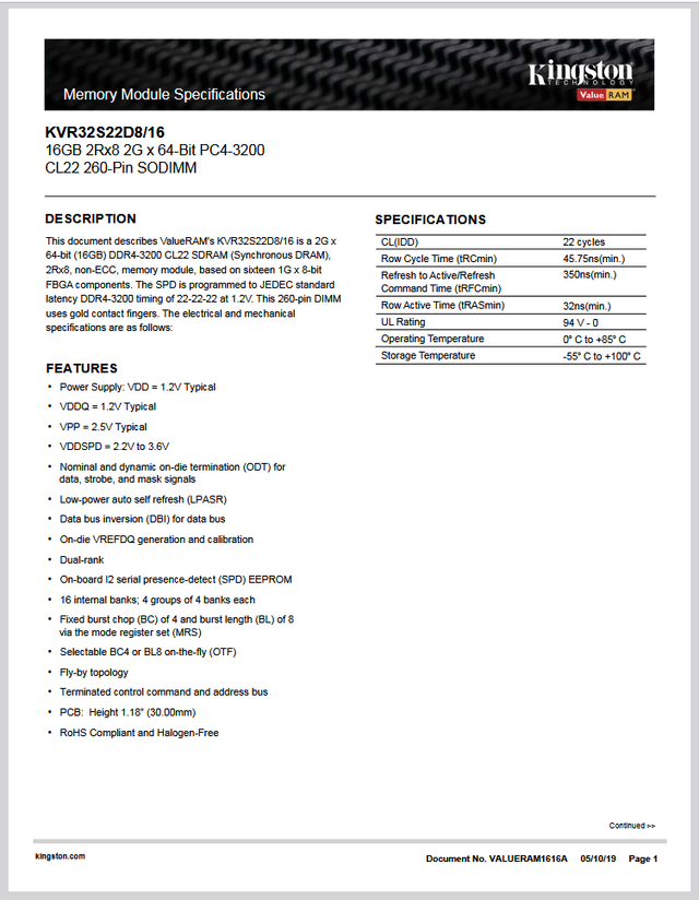 Ram Kingston 16GB DDR4 SO Dimm Notebook KVR32S22D8/16 Arbeitsspeicher-PC
